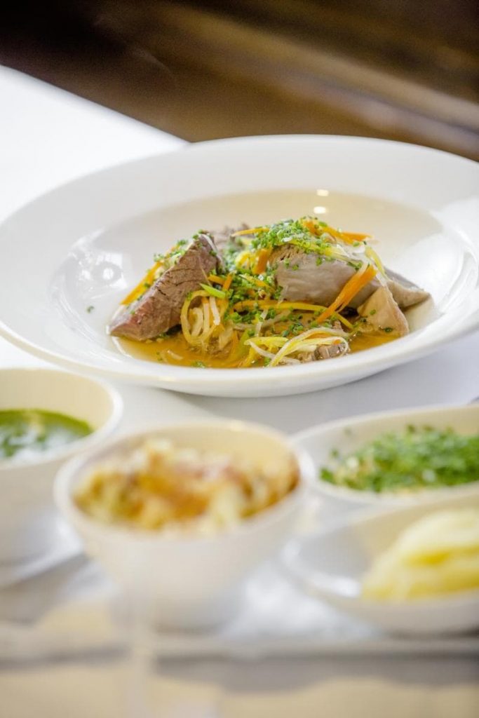 Wir wurden an diesem Abend von Qualität und Geschmack mehr als überzeugt. Das rosa gebratene Beiried (Lende) ist auf der Zunge zergangen und die marinierten Kräuter aus dem Hausgarten waren das perfekte Gegenspiel zu dem gebrannten Schafskäse. So wundert es uns gar nicht, dass dieses exklusive Hauben-Restaurant im Romantik Hotel GMACHL auch in diesem Jahr wieder vom Gourmet-Führer Gault Millau mit 13 Punkten ausgezeichnet wurde. 13 Punkte entsprechen übrigens einer Haube…
